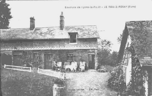 ![]() Ci-contre, de gauche à droite sur la carte postale, vers 1923 Le photographe et sa voiture, Ernest Saquet propriétaire du café, Léopold Alciliade Saquet, Blanche Saquet, deux filles du village, Flora Saquet (épouse d’Ernest et mère de Blanche) Anecdote tout à fait étonnante sur ce café du Roule. Narcisse Désiré Eléonor Vaillant (né en 1805) stoppe en forêt de Lyons un carrosse dont les chevaux se sont emballés. Quelle n'est pas sa surprise d'en voir descendre l'Empereur Napoléon III ! En récompense, l'Empereur lui propose la Légion d'Honneur ou un débit de tabac. Le père Vaillant lui rétorquera alors : " Sire, je préfère la Légion d'Honneur mais je ne suis pas riche, alors je choisis le débit de tabac ". Vers 1920, Ernest Saquet est contremaitre à la boissellerie et Flora, son épouse et petite-fille de Narcisse, tient le café. Ils le revendront vers 1930 à la famille Gallard pour acheter un café-épicerie à Rouen. (anecdote rapportée dans un E.Mail de décembre 2001 par François Postaire, Léopold Alciliade Saquet étant son arrière-arrière grand-père maternel . Merci) |