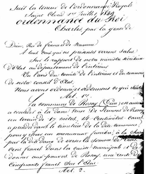 ![]() | ![]() "TOMBES MILITAIRES" "Loi du 4 Avril 1873" A l’automne 1870, après la défaite de Sedan, la comtesse Apollonie de Valon transforme son château de Rosay en hôpital. On disait "ambulance" Ces tombes de la guerre de 70 ont disparu de nos cimetières. |
