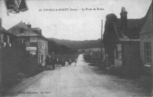 ![]() Ci-contre, de gauche à droite sur la carte postale, vers 1923 Le photographe et sa voiture, Ernest Saquet propriétaire du café, Léopold Alciliade Saquet, Blanche Saquet, deux filles du village, Flora Saquet (épouse d’Ernest et mère de Blanche) Anecdote tout à fait étonnante sur ce café du Roule. Narcisse Désiré Eléonor Vaillant (né en 1805) stoppe en forêt de Lyons un carrosse dont les chevaux se sont emballés. Quelle n'est pas sa surprise d'en voir descendre l'Empereur Napoléon III ! En récompense, l'Empereur lui propose la Légion d'Honneur ou un débit de tabac. Le père Vaillant lui rétorquera alors : " Sire, je préfère la Légion d'Honneur mais je ne suis pas riche, alors je choisis le débit de tabac ". Vers 1920, Ernest Saquet est contremaitre à la boissellerie et Flora, son épouse et petite-fille de Narcisse, tient le café. Ils le revendront vers 1930 à la famille Gallard pour acheter un café-épicerie à Rouen. (anecdote rapportée dans un E.Mail de décembre 2001 par François Postaire, Léopold Alciliade Saquet étant son arrière-arrière grand-père maternel . Merci) |