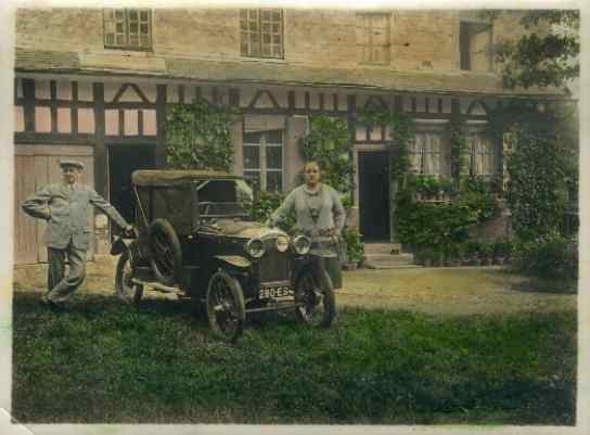 ![]() Vers 1920 : Ernest et Flora Saquet avec la BB peugeot devant la porte de la boissellerie où travaillait Ernest comme contremaître. C'est le père de Flora qui avait colorié la photo à l'époque avec un produit spécial. Source F.Postaire |