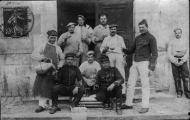 La caserne de Vernon en 1910 : "Courage à la classe 1909" Lucien DEMOUCHY, au second rang à droite avec le képi |