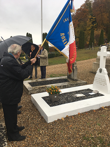 ![]() Edmond Lamotte, président des Anciens Combattants de Rosay, dépose une gerbe aux côtés du maire. |