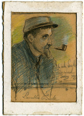 ![]() "Le poilu LAVALLEE" Croquis réalisé en 1915 durant la guerre des tranchées par son caporal, Lanoux. Tenue bleue horizon. Ce document appartient à son petit-fils, Rémi. |