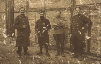 ![]() Lucien Picard, prisonnier et assis à droite (photo allemande de propagande) ![]() Médailles de gauche à droite Médaille Commémorative Interalliée Croix du Combattant Insigne des blessés |
