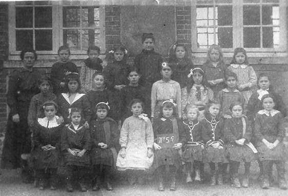 Cette photo de classe a été prise au début de la guerre 14 à la nouvelle école des filles. Mr et Mme DUFAYET sont nommés à Rosay en 1910. A l'initiative de Mme Dufayet, ces enfants de Rosay participeront à la confection de colis pour les soldats. Difficile d'identifier ces petites filles parmi lesquelles se trouvent certainement les enfants de Jules Bénard, disparu aux Dardanelles en 1915. |