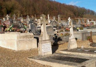 ![]() Les tombes de René Moisant et Albert Lavallée au cimetière de Rosay en 2003 |