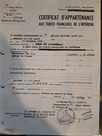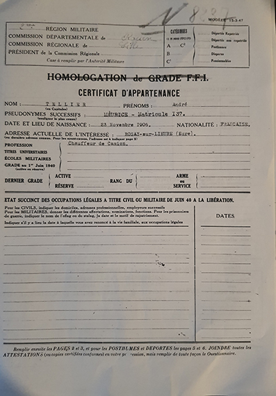 André TELLIER 1906 - 1972 Rosay au Roule employé au moulin de Rosay - marié engagement dans l'O.R.A le 1 fév 44 | Charles ROULAND 1917 - 1992 Rosay au Roule bucheron engagement dans l'O.R.A le 1 fév 44 |