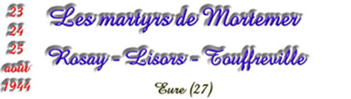 Dans la soirée du 23 août 1944, une semaine avant la libération de Lyons, un groupe de résistants sous les ordres de Jean Balmino échoue dans une opération à la fontaine Sainte Catherine, près de l'abbaye de Mortemer. Le groupe, qui campe à la Croix, convient de recommencer le lendemain matin alors que les allemands préparent l'encerclement du secteur. Le piège se refermera pour sept hommes qui seront fusillés et enterrés sur place. Le plus jeune n'avait que dix-neuf ans. Le 25 août, les allemands arrêtent sur leur lieu de travail ou à leur domicile quatre hommes. Trois d'entre eux disparaîtront à jamais et le quatrième, qui a probablement tenté de s'enfuir, est abattu au Hêtre à Dieu. .... et sur deux autres pages du site Les photos des cérémonies du souvenir en septembre Les journées des 23-24-25 août 1944 à Mortemer |