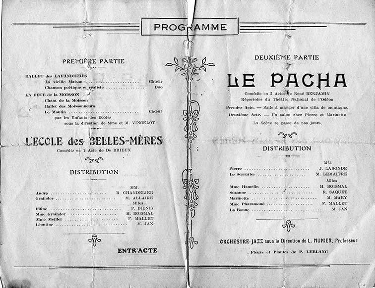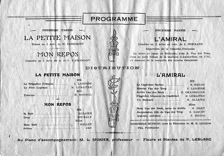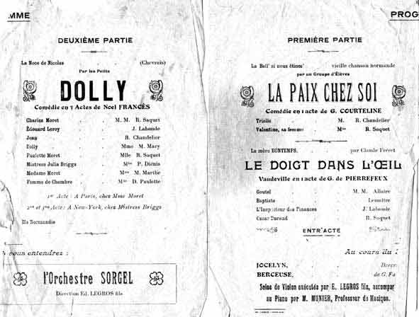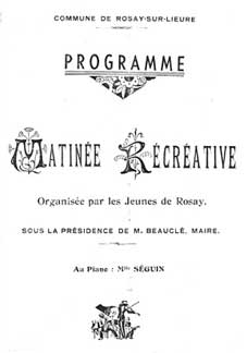 | Il n'y a pas de photos de ce premier spectacle. Au piano, Mlle Seguin. Tous les acteurs sont originaires de Rosay. | ||