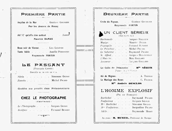 matinée théâtrale du 2 janvier 1944 est semble-t-il