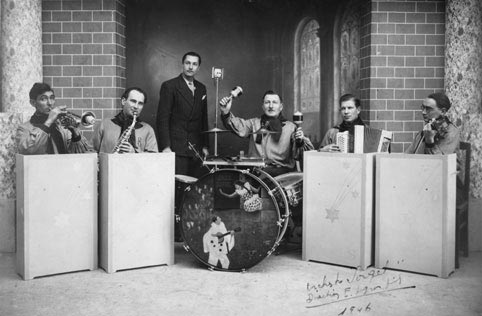 L'orchestre SORGEL en 1946 ![]() de gauche à droite: Fortier à la trompette, Edmond Legros au saxo, J.Duret chanteur, Georges Janvier à la batterie, Jean Philippe à l'accordéon, Gilbert Groult au violon |