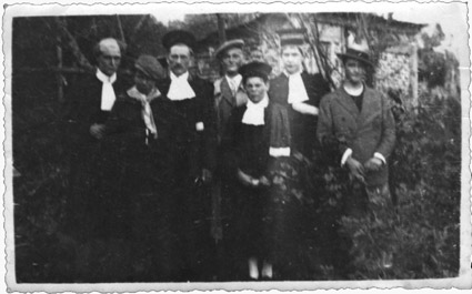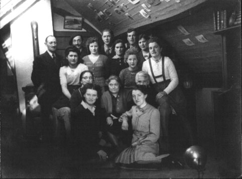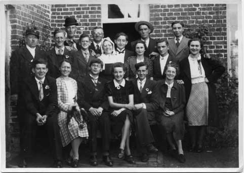 C'est dans le grenier aménagé de leur maison que les époux Munier accueillaient les jeunes du village. Cette maison était le lieu de rendez-vous au cours desquels Monsieur Munier donnait des cours de valse et tango. C'était aussi des cours de chant avec M.Munier au piano. Le cliché ci-dessous est pris après un réveillon. |