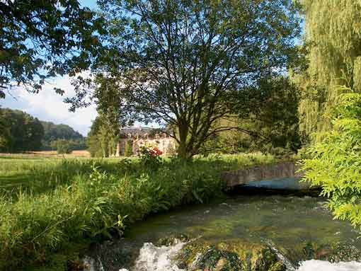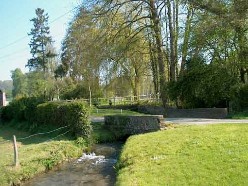![]() Le chemin des Maraichers qui longe la Lieure. A droite l’église. |