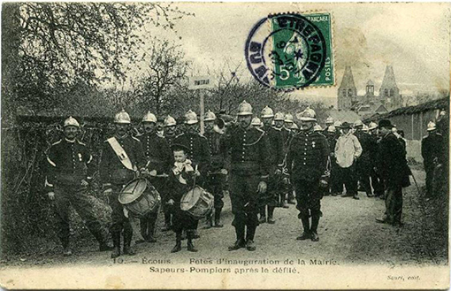 En février 1885, l’adjoint au maire et l’instituteur M Campigny procèdent à un inventaire des objets d’usage de pompiers et de musique : 30 ceintures de sapeurs et 2 d’officiers, 43 casques, 38 képis de sapeurs, 2 d’officiers, 6 de sous-officiers, une pompe aspirante-foulante, 6 tréteaux, 4 longs tuyaux, 2 gros aspirants, une échelle de pompe avec ses cordes, 60 seaux. En 1870, une lettre du préfet accordait 200F pour l’organisation de l’équipement des sapeurs-pompiers. On peut penser que la disparition de la comtesse en 1904 et la guerre 14 auront eu raison de cette subdivision. On ne trouve pas trace dans les archives de compte-rendu d’activités ou de bilan de trésorerie, pas d’article de presse relatant une intervention. Les sapeurs pompiers sont présents à la retraite aux flambeaux de la Fête Nationale. La dernière trace de présence apparait le 27 février 1910 : un tuyau aspirant étant en mauvais état, il faut prévoir 100F. Quoi qu’il en soit, la commune aura maintenu bon an mal an durant une cinquantaine d’années une subdivision enregistrée par la préfecture et répertoriée dans l’annuaire du département |