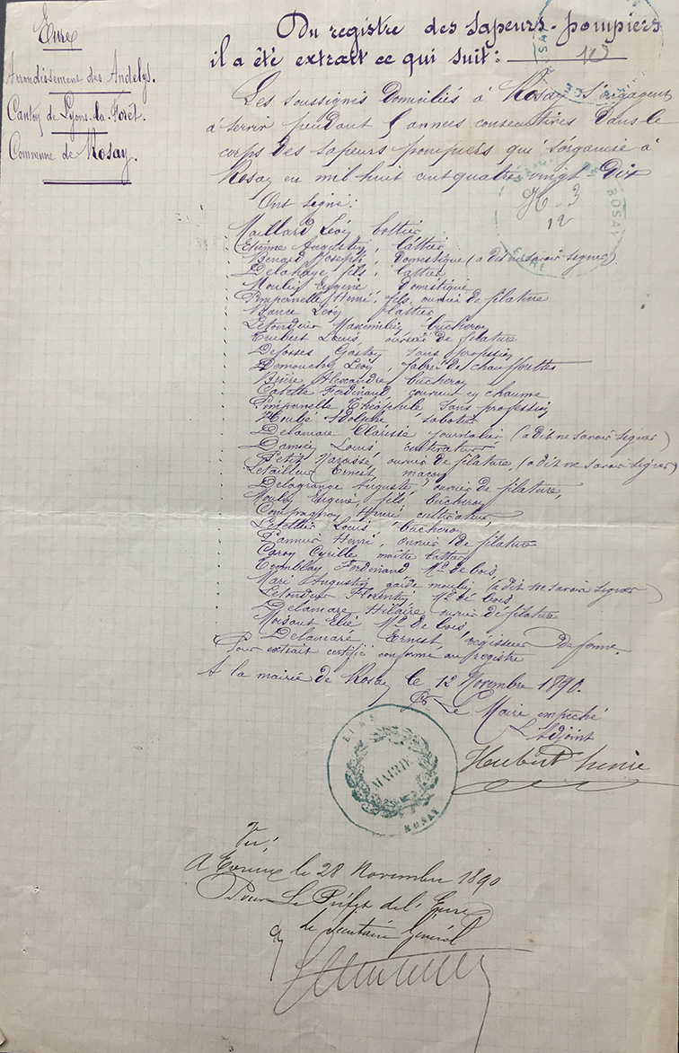 | Il y a cent cinquante ans, une subdivision de sapeurs-pompiers à Rosay Article paru dans Rosay Infos 2020 |