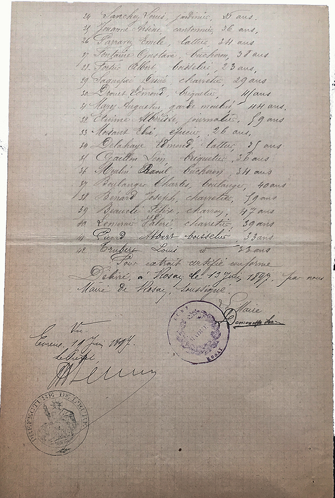 | 28 novembre 1890 : listing établi par la préfecture à Evreux. 31hommes souscrivent un engagement quinquénal |