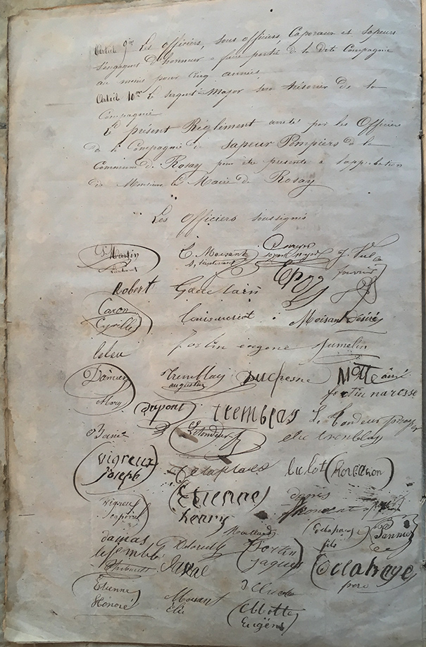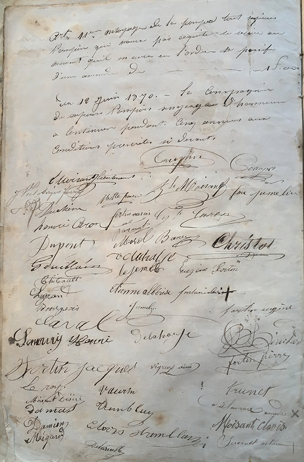 12 juin 1870 ajout de l’article11 au règlement et signature des sapeurs volontaires |