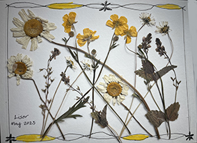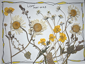 Herbiers de fleurs de printemps réalisés par Dolorès lors de sa visite en France en mai 2025, venue de San Francisco.